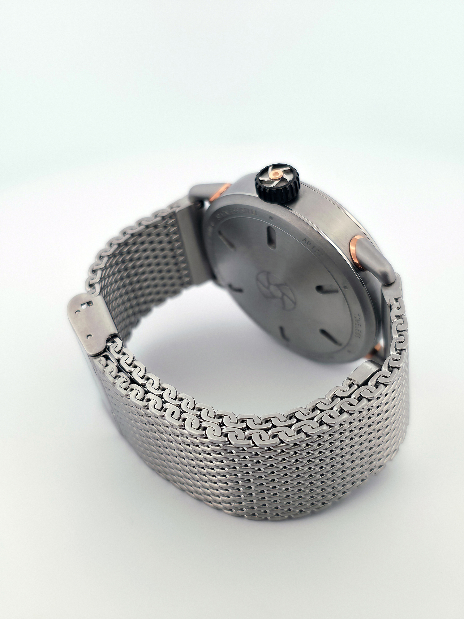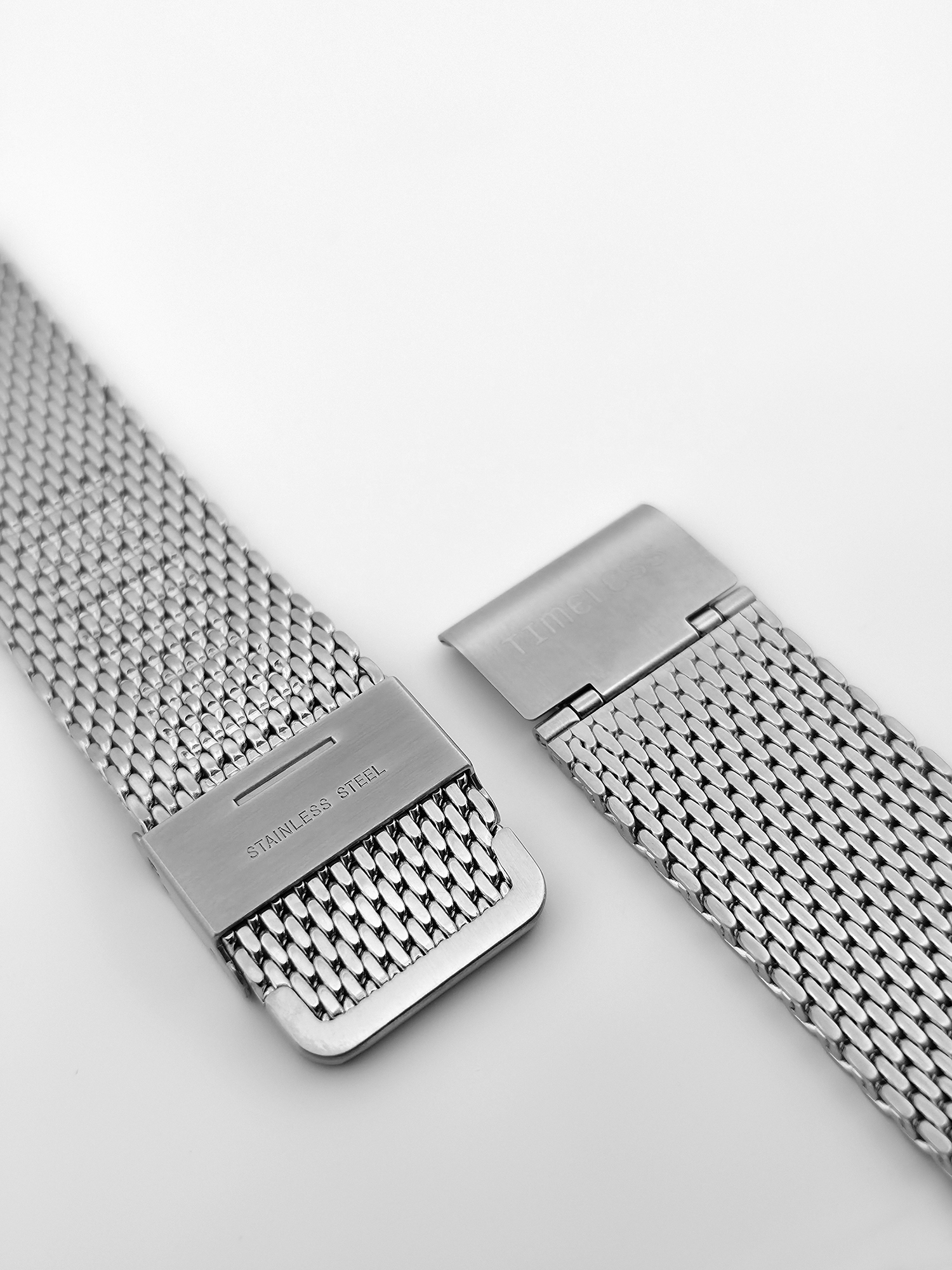 Adjustable stainless steel bracelet in fine mesh, decorated with the Timeless logo